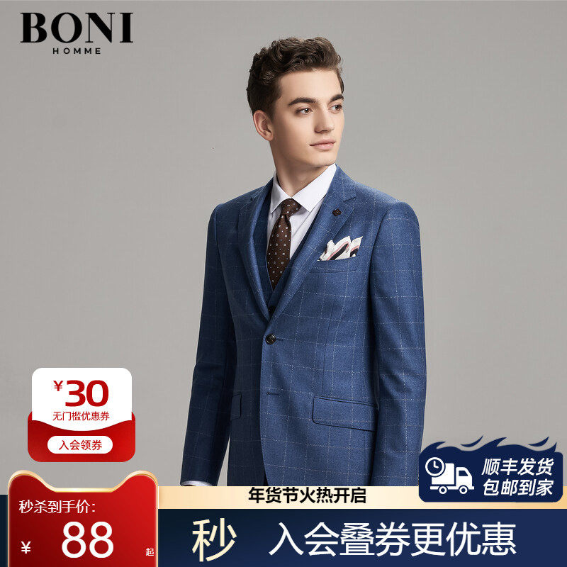 BONI/堡尼商务羊毛休闲西服套装男韩版修身正装结婚礼服AK669121A
