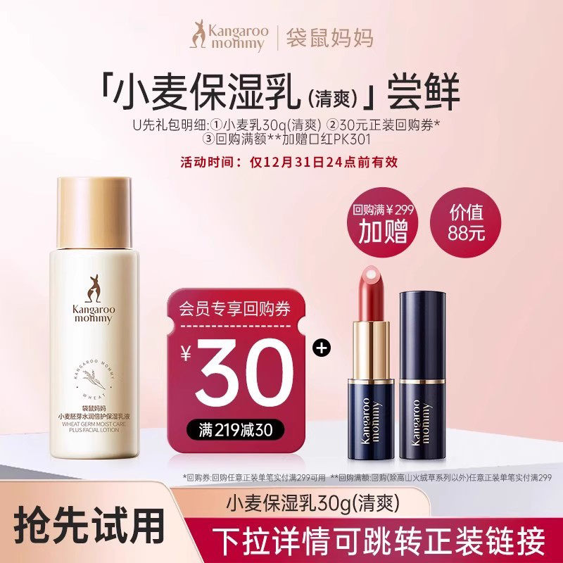 【天猫U先】袋鼠妈妈乳液油皮小麦保湿乳30g清爽准孕妇补水体验装