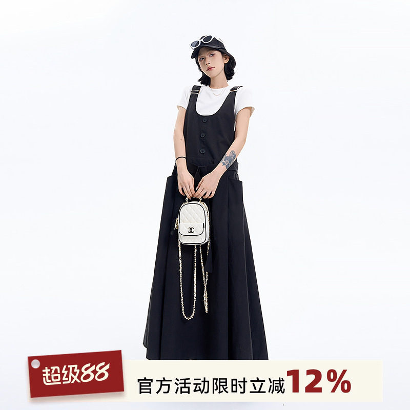 播商场同款黑色可拆卸背带裙女夏季新款高腰显瘦裙子BDS2BD2493