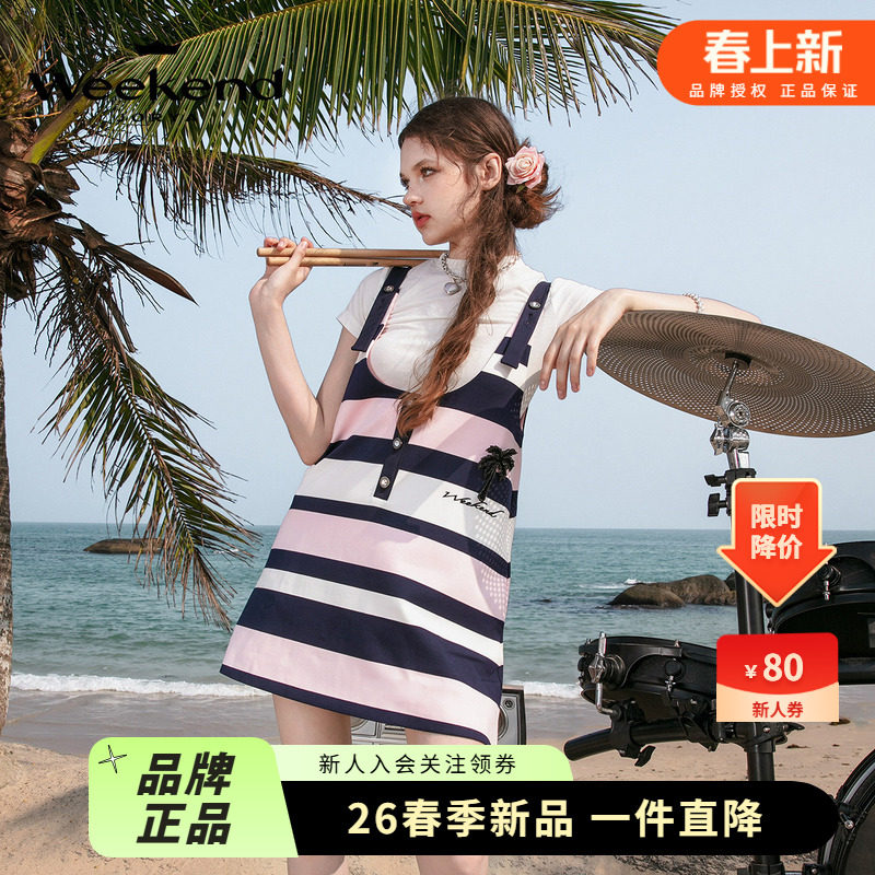 卓雅周末24夏季新款学院落日椰树刺绣条纹A版背带连衣裙EJWEBG26