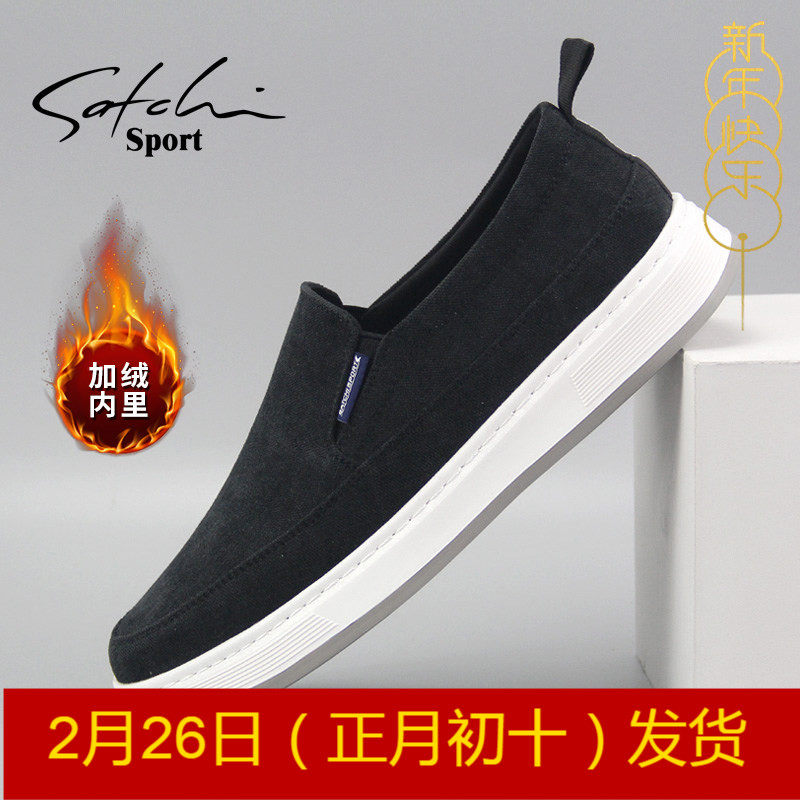 沙驰运动布鞋秋冬帆布鞋套脚男鞋板鞋可选加绒男士懒人轻便休闲鞋