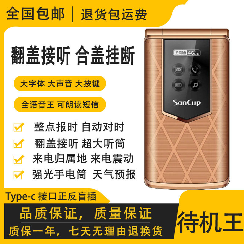翻盖老人机4G5G全网通超长待机语音播报大字大声按键老年人手机