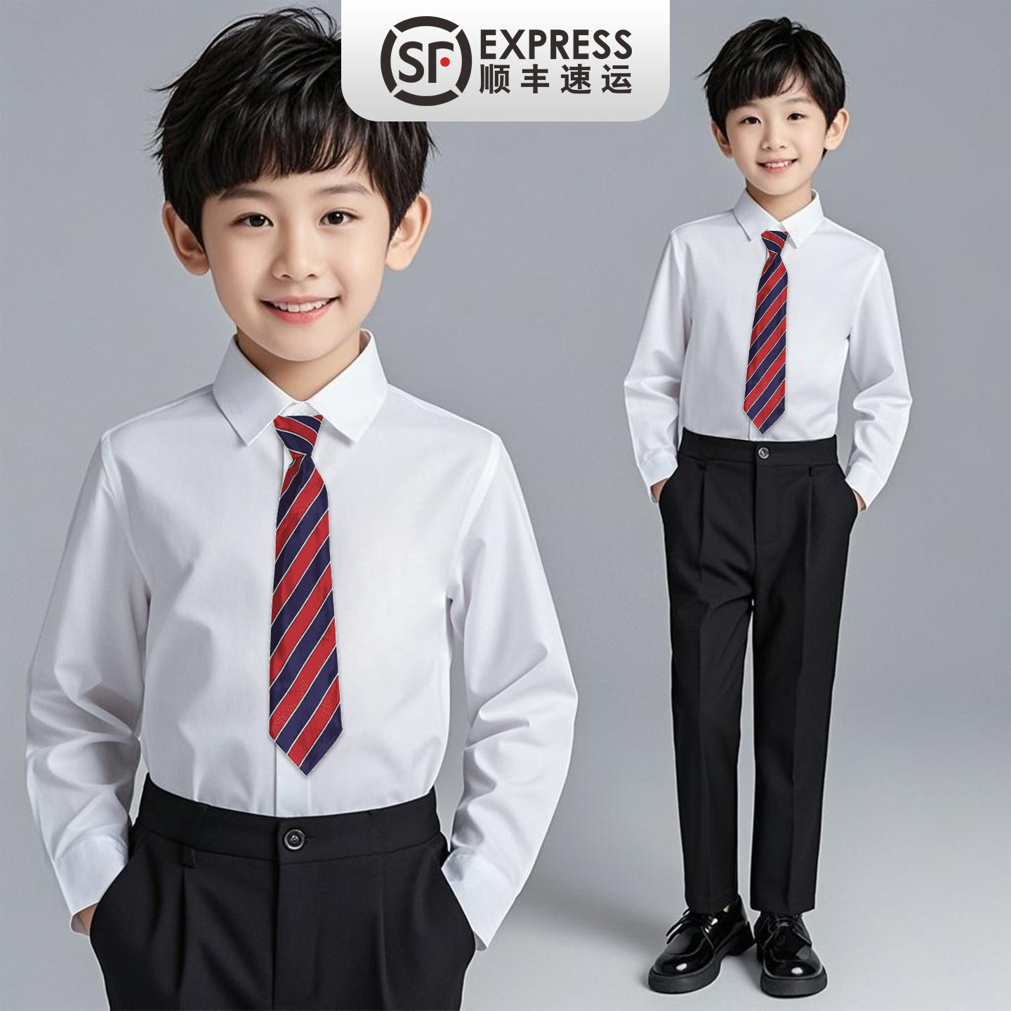 儿童白衬衫男童女童长袖棉夏季纯白色衬衣蓝色小学生校服表演出服