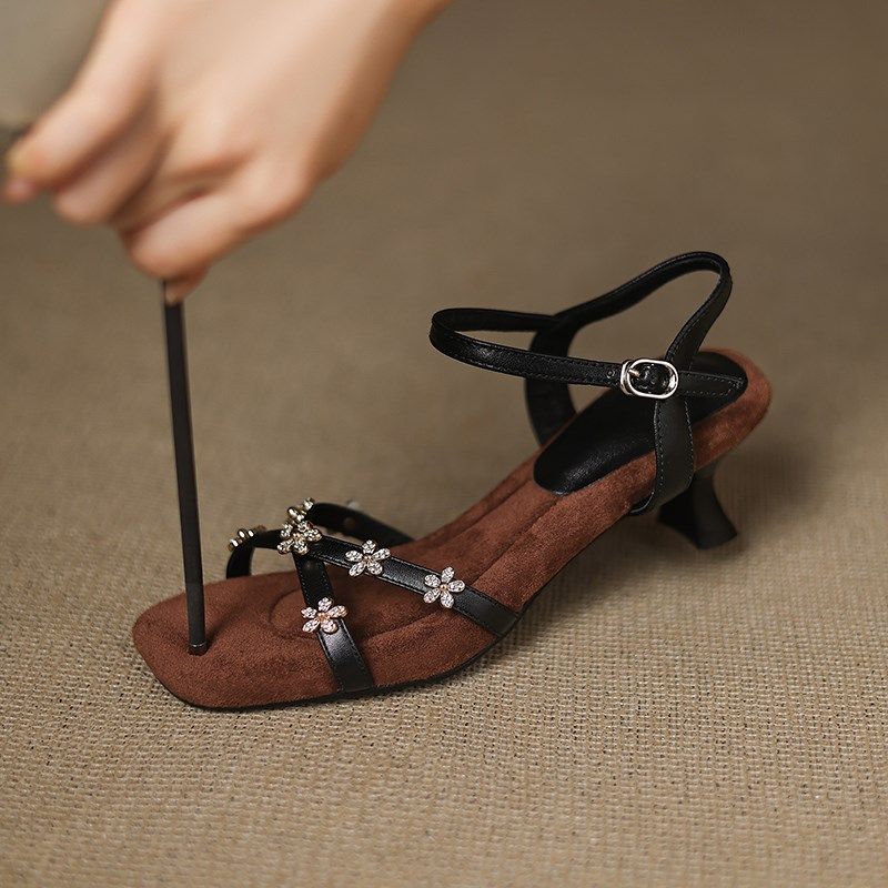 5cm法式绝美粗跟踩屎感小凉鞋女夏中跟软底外穿超软不累脚高跟鞋