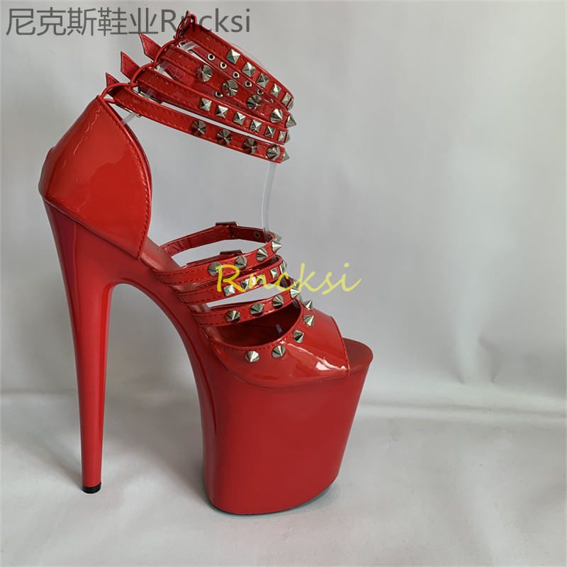 欧美家铆钉尖头高跟鞋细跟浅口柳钉包头绑带柳丁凉鞋女夏中跟单鞋