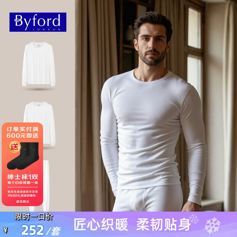 BYFORD/百富男士秋衣秋裤全棉秋冬无缝内衣打底青年基础款MW39011