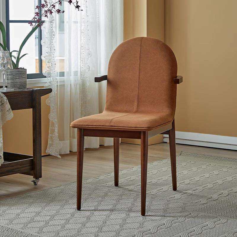 美式复古实木餐椅简约休闲靠背胡桃色真皮椅子餐厅餐桌椅家用凳子