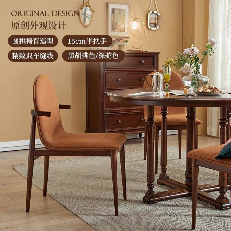 美式轻奢实木餐椅简约软包靠背单人椅家用中古椅法式复古餐桌椅子