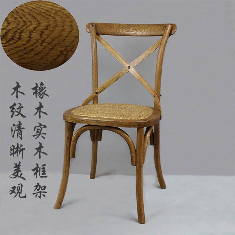 美式复古餐椅实木咖啡椅家用成人靠背椅子饭店餐R厅叉背椅做旧乡