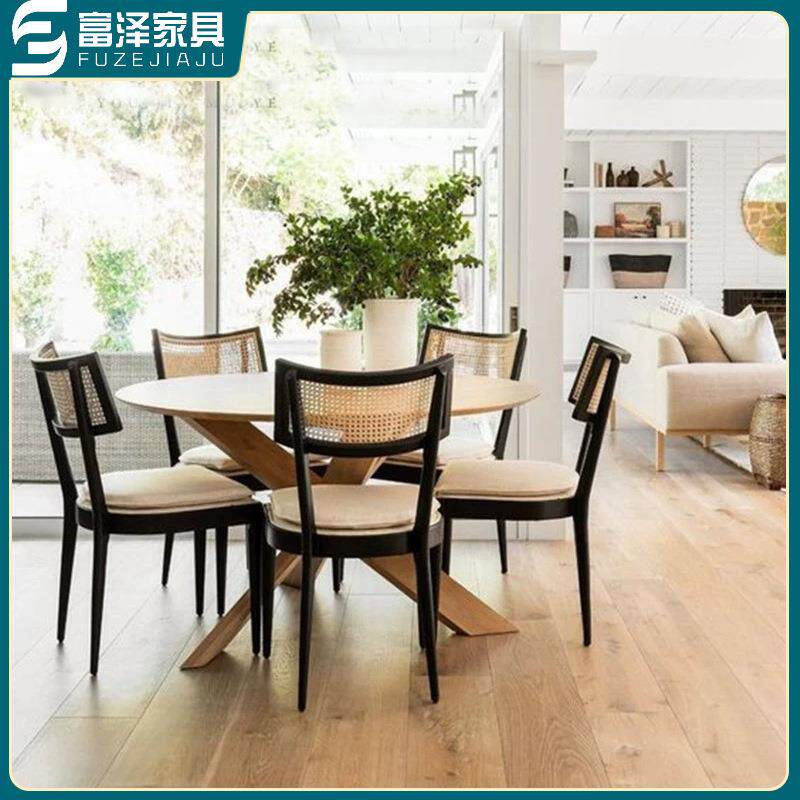 北欧法式藤编复古椅背叉椅餐椅乡村实木椅靠背椅餐厅简约美式民宿