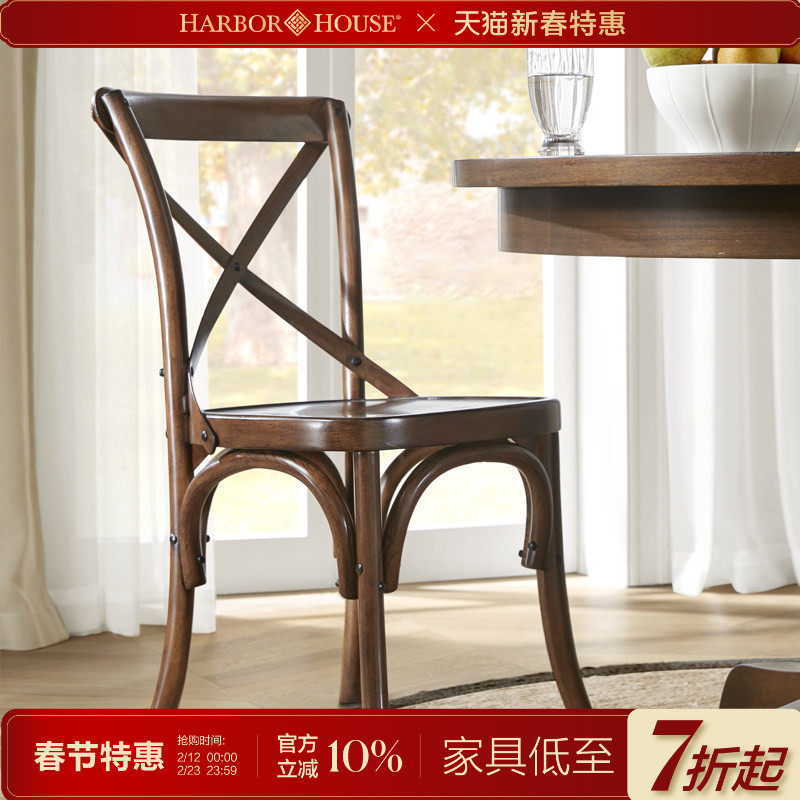 HarborHouse美式复古餐椅圆角实木单椅餐厅中古家具椅子Arlo