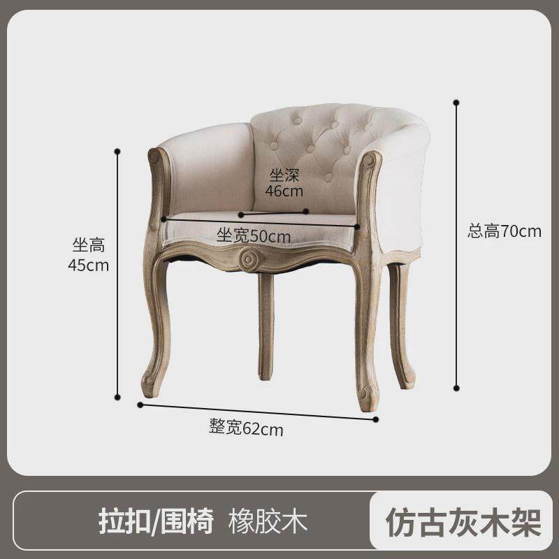美式中古实木餐椅家用靠背椅复古单人椅法式休闲椅设计师高级感椅