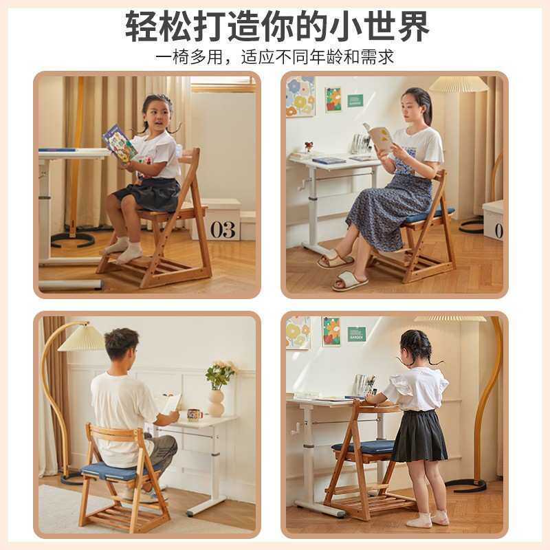 可折叠可携式进口山毛榉实木宝宝餐椅儿童成长椅可调节家用学习椅