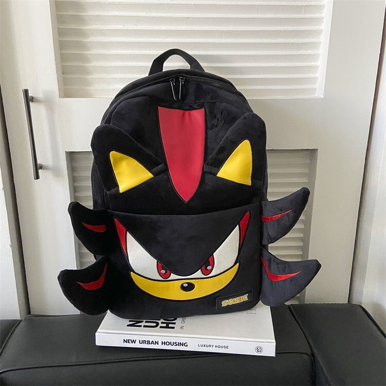 索尼克书包自制校园百搭暗影黑色毛绒小众双肩包情侣学生旅行书包