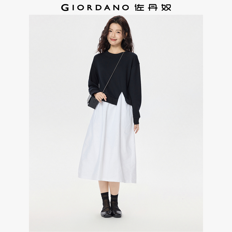 佐丹奴假两件连衣裙女秋季新款拼接好看宽松圆领长袖裙子05465855