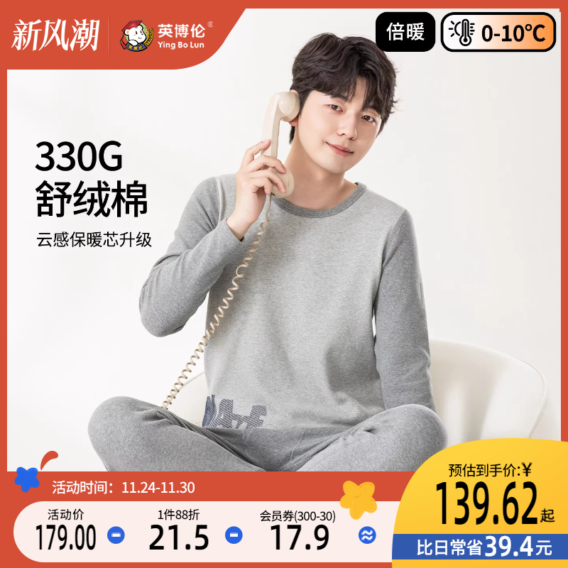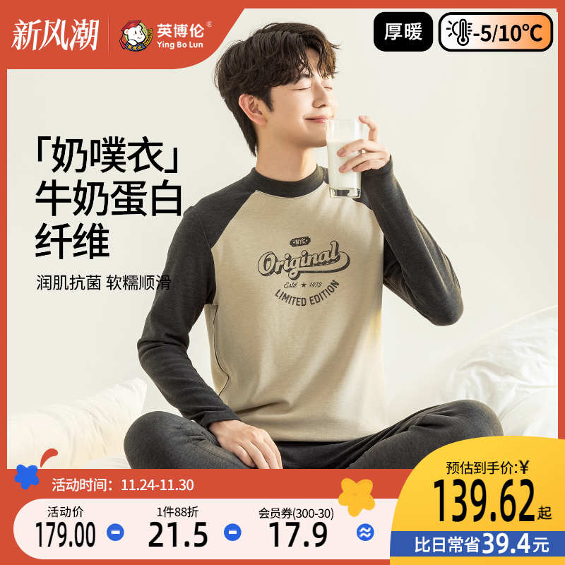 英博伦青少年内衣套装秋冬新款纯棉保暖男大童初高中学生秋衣秋裤