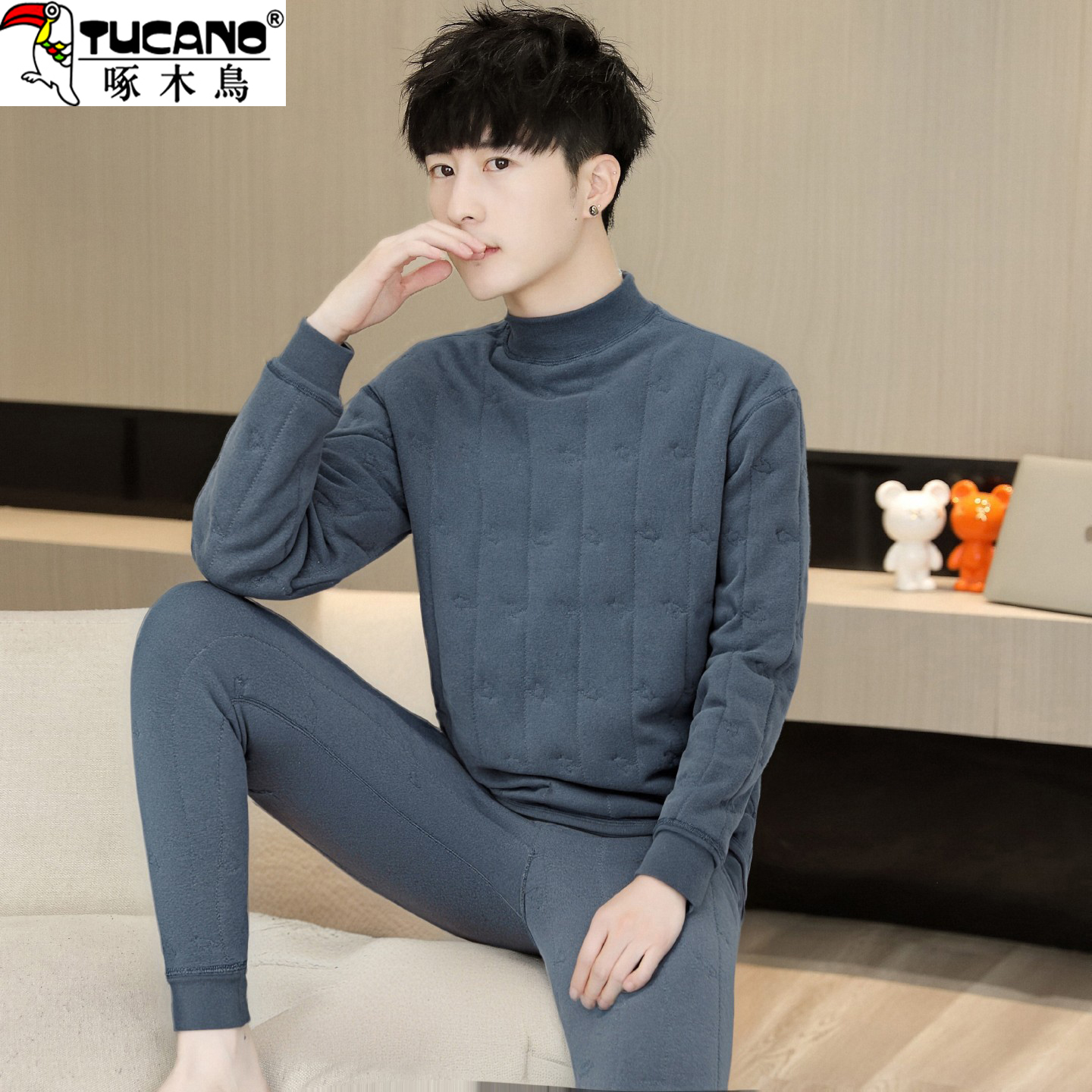 啄木鸟巨厚保暖羊毛内胆两件套秋冬青少年内衣套装男加厚棉衣棉裤