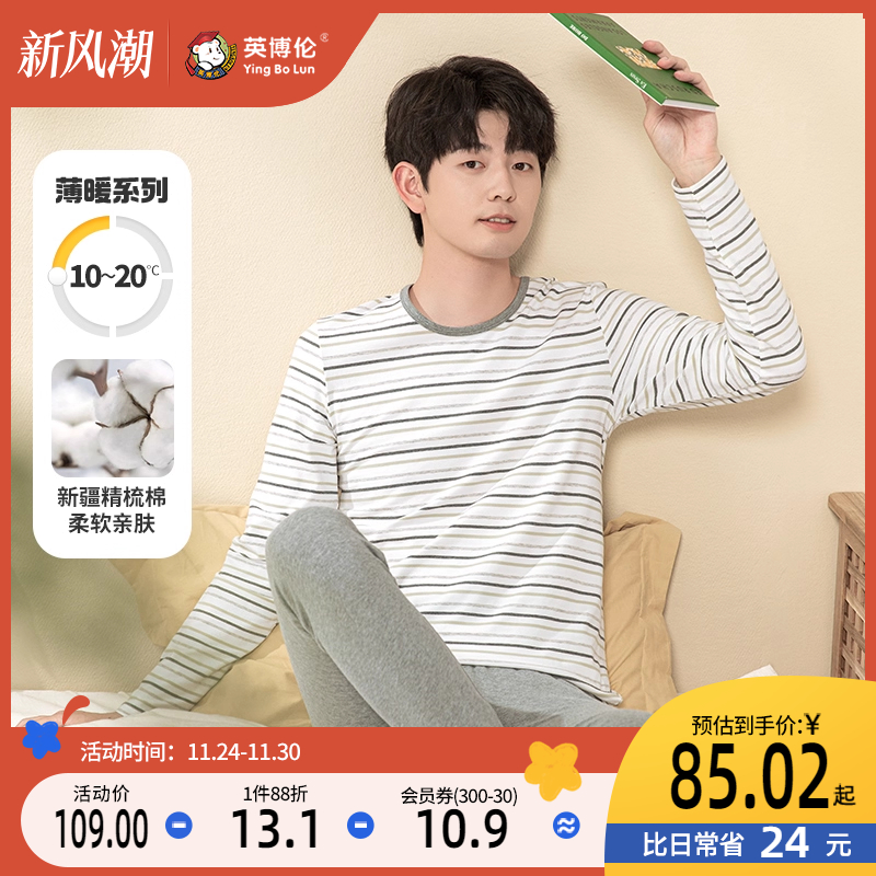 英博伦青少年内衣套装秋冬薄款纯棉男大童秋衣秋裤初中生全棉睡衣