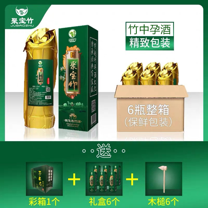 聚宝竹整箱6瓶竹筒酒鲜竹酒竹子酒原生态竹酒青竹酒52度白酒基酒