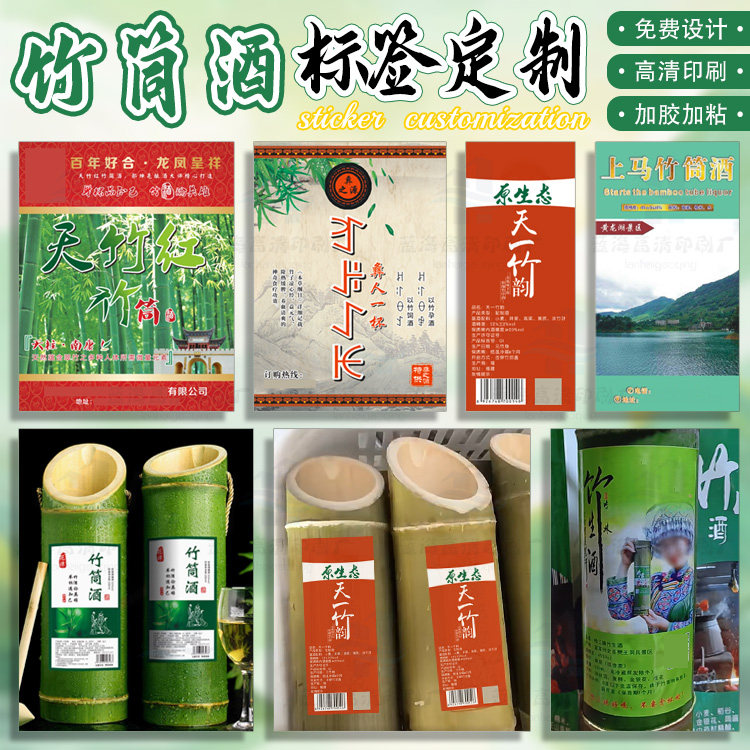 竹筒酒青竹酒白酒贴纸鲜竹子白酒竹叶酒不干胶竹露酒竹叶青包装贴