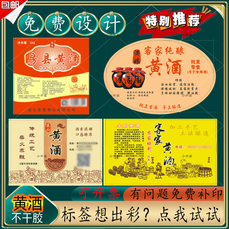 定制黄酒火灸酒白酒不干胶白酒米酒糯米酒防水包装竹筒酒洑汁商标