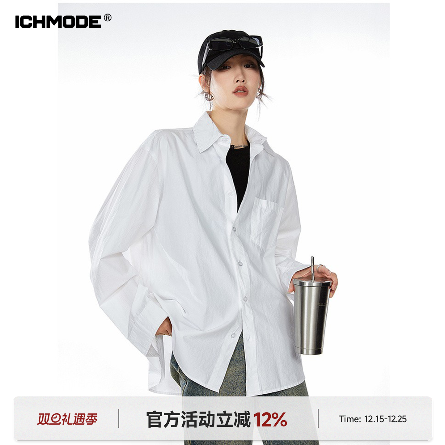 ICH MODE 美式复古白衬衫女夏季新款宽松流行衬衣外套上衣慵懒风