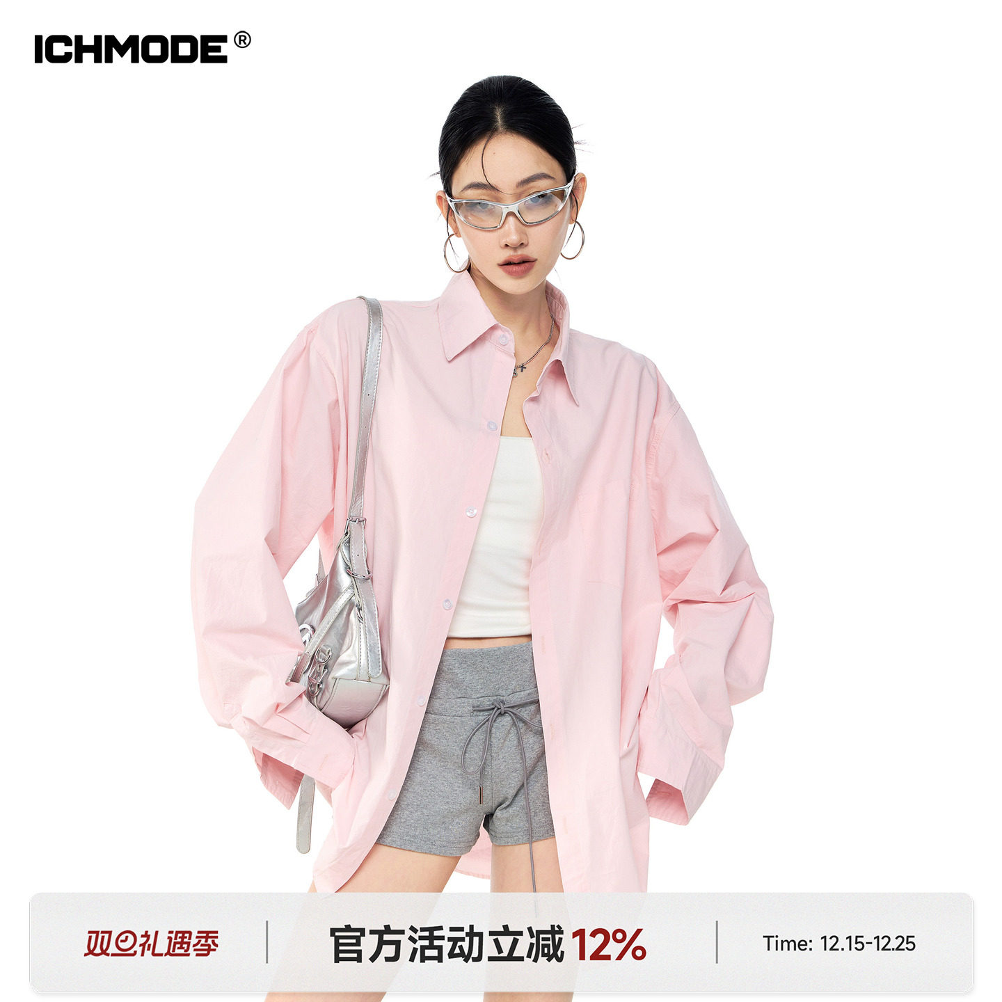ICHMODE 美式粉色衬衫女春夏季新款流行宽松廓形衬衣外套内搭上衣