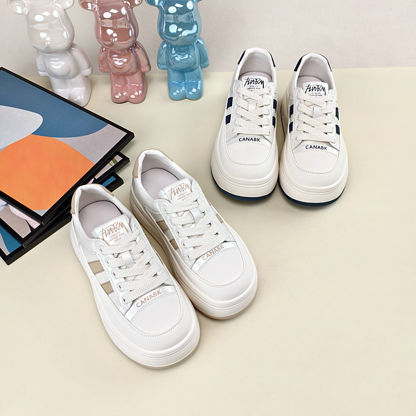 2025新款韩版真皮厚底小白鞋女运动板鞋增高松糕底系带德训鞋女舍