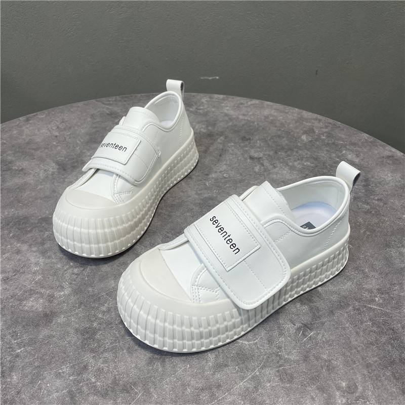 厚底小白鞋女魔术贴真皮2024韩版春夏新款系带百搭松糕底透气单鞋