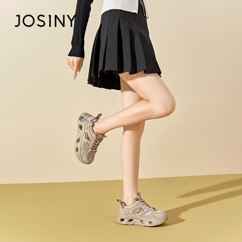 卓诗尼女鞋圆头松糕底系带运动休闲小白鞋老爹鞋百搭韩版通勤日常