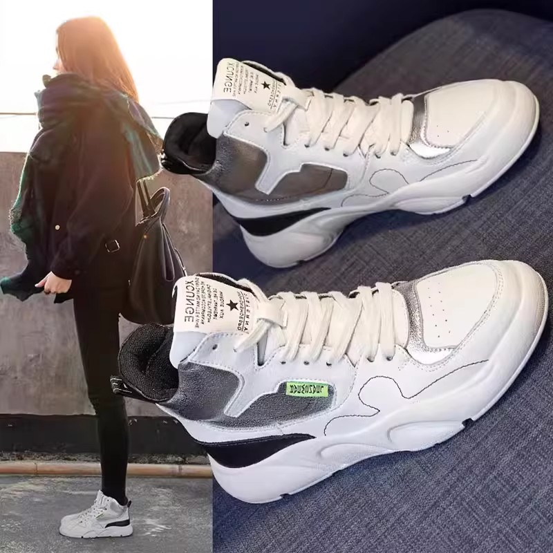 @琛南优选高帮女鞋2025秋冬百搭小白鞋系带休闲鞋韩版松糕底增a37