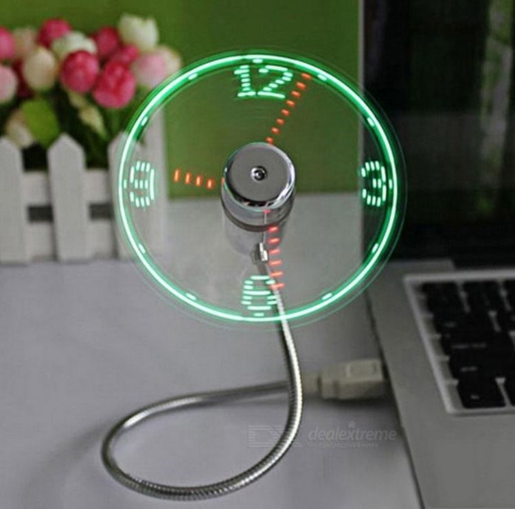 智能USB时钟小风扇LED发光创意迷你风扇学生办公电脑风扇小型礼品