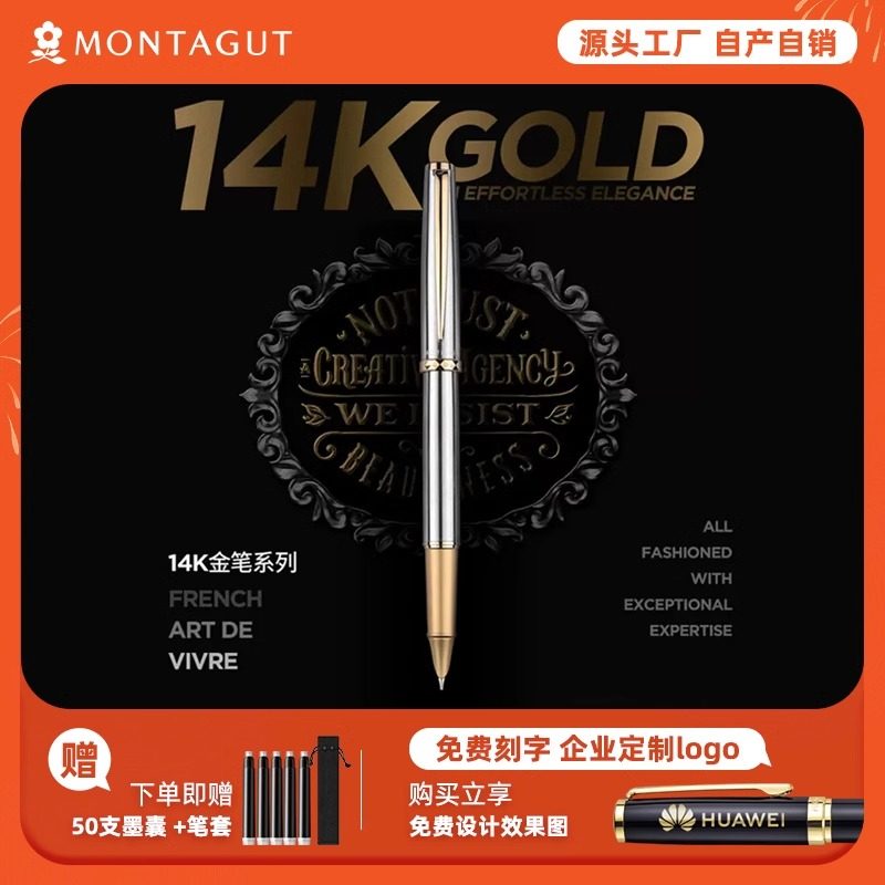 法国梦特娇钢笔100系列14K金笔男士女士高档精致礼盒套装官方正品旗舰店经典复古成人办公签名笔送礼定制刻字