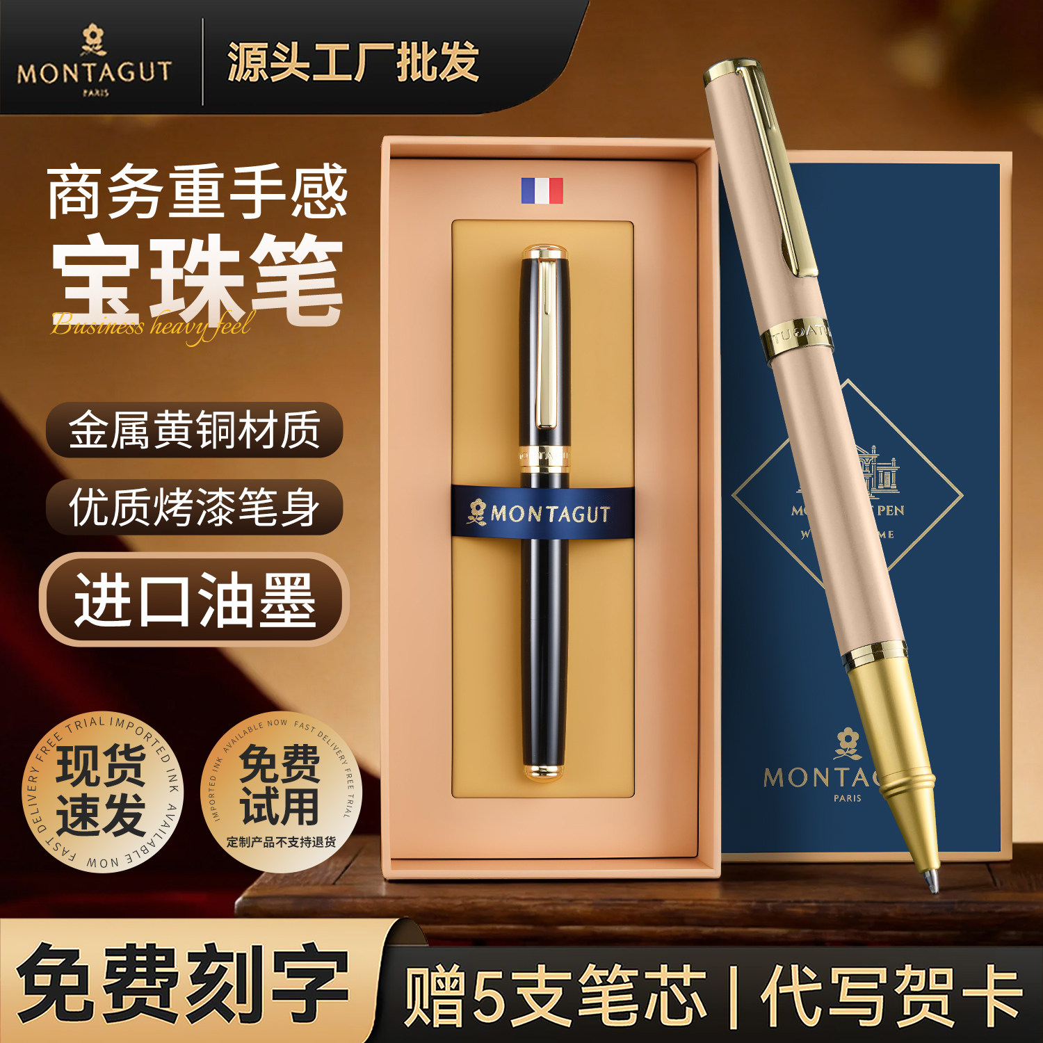 法国梦特娇送礼签字笔商务高档宝珠笔金属重手感商务男士高档精致高端圆珠笔办公签名礼物定制刻字