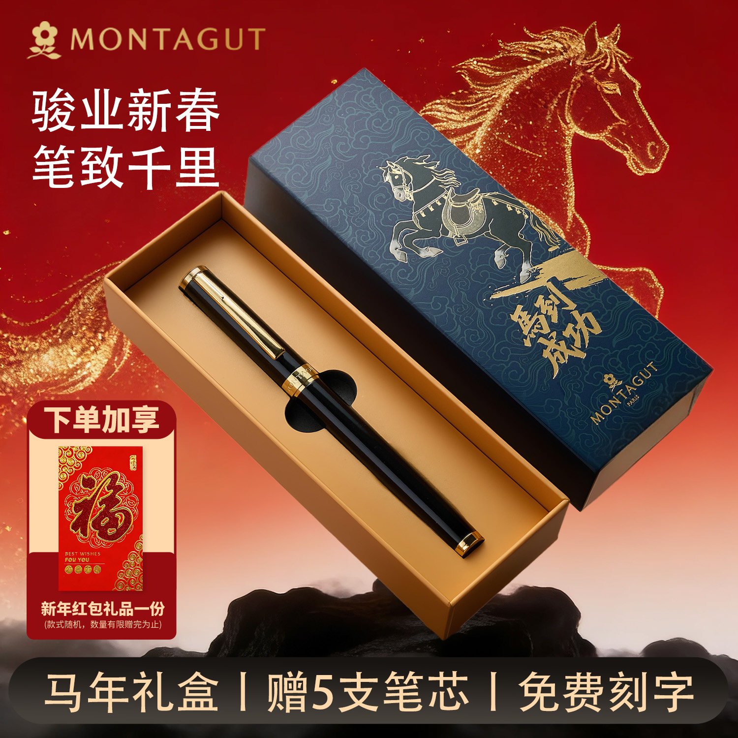 [新年礼物】法国梦特娇马年伴手礼送领导送老师高档商务宝珠笔签字笔男士女士高级定制刻字笔金属笔官方正品