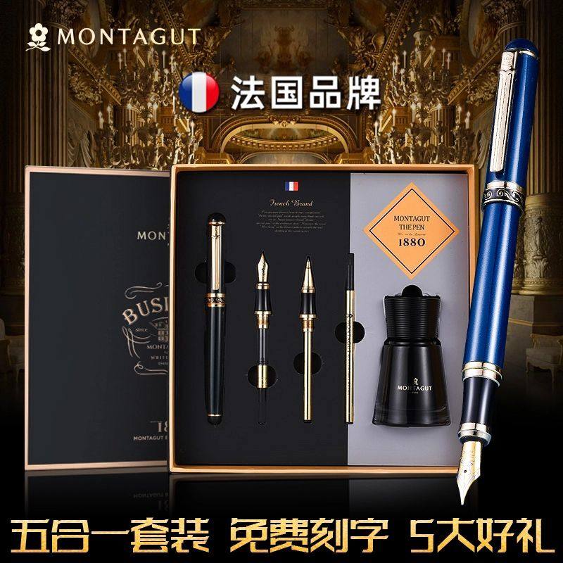 法国梦特娇钢笔三笔头墨水书签礼盒套装学生专用练字成人用男士女士高档精致礼物送礼男生帅气定制