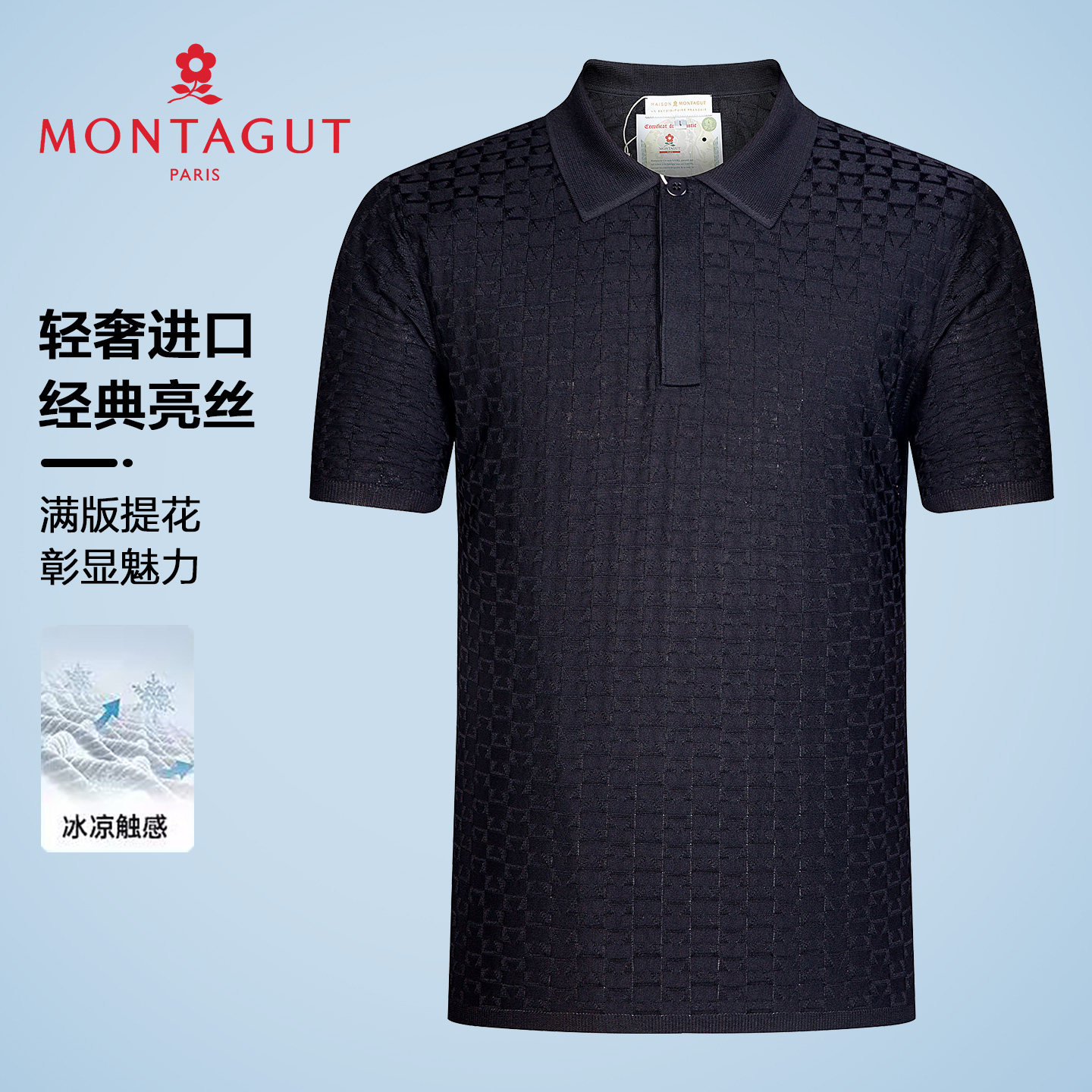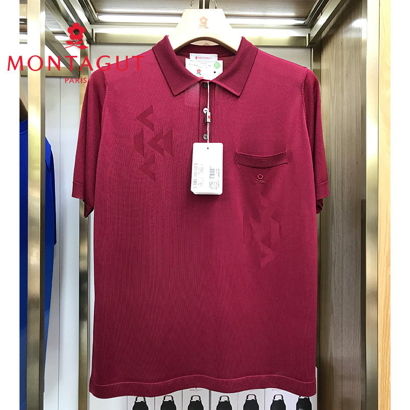 [提花/进口亮丝]正宗法国梦特娇短袖T恤男夏季薄冰丝翻领POLO衫M