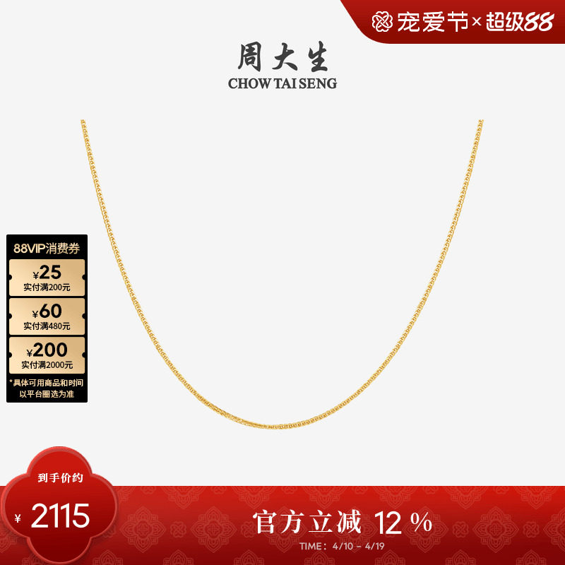 周大生黄金项链女计价足金O字锁骨链素链百搭吊坠送女友生日礼物