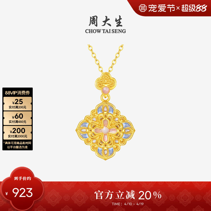 周大生18K金项链吊坠花丝珐琅祥云四合如意套链生日礼物送女友