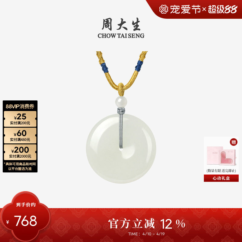 周大生福气平安扣项链女S925银玉髓吊坠国风新中式送女友生日礼物