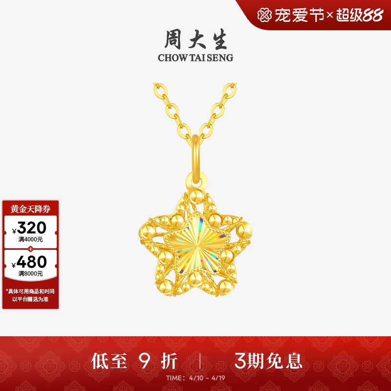周大生小甜星黄金吊坠足金许愿星月亮项链星星挂坠送女友生日礼物