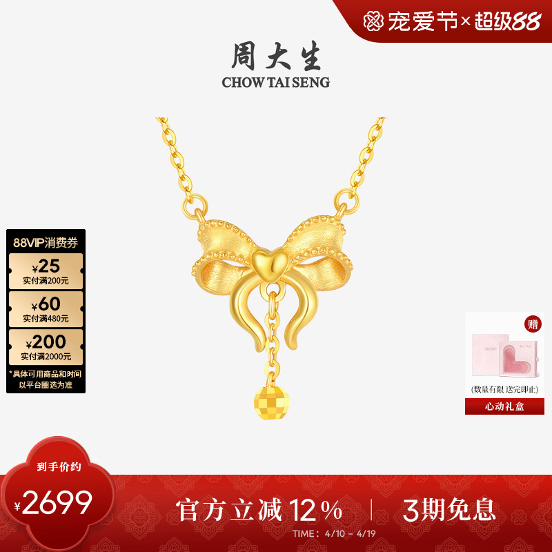 周大生黄18k金项链吊坠在逃公主蝴蝶结锁骨套链送女友生日礼物