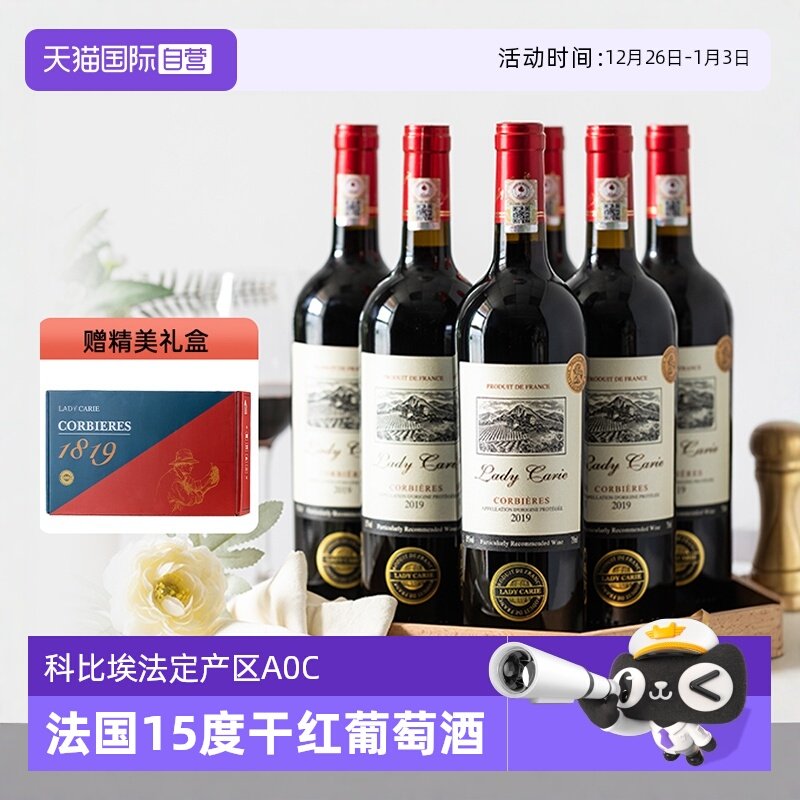 【自营】法国进口红酒AOC干红葡萄酒正品卡尔夫人整箱6支礼盒装