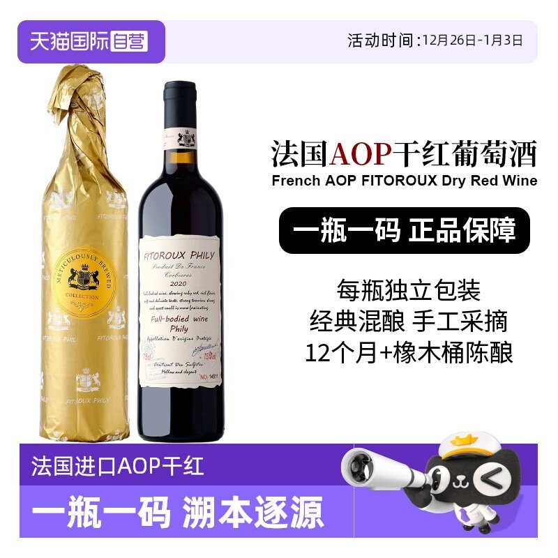 【自营】法国进口红酒法定产区AOC干红葡萄酒官方正品红酒整箱装