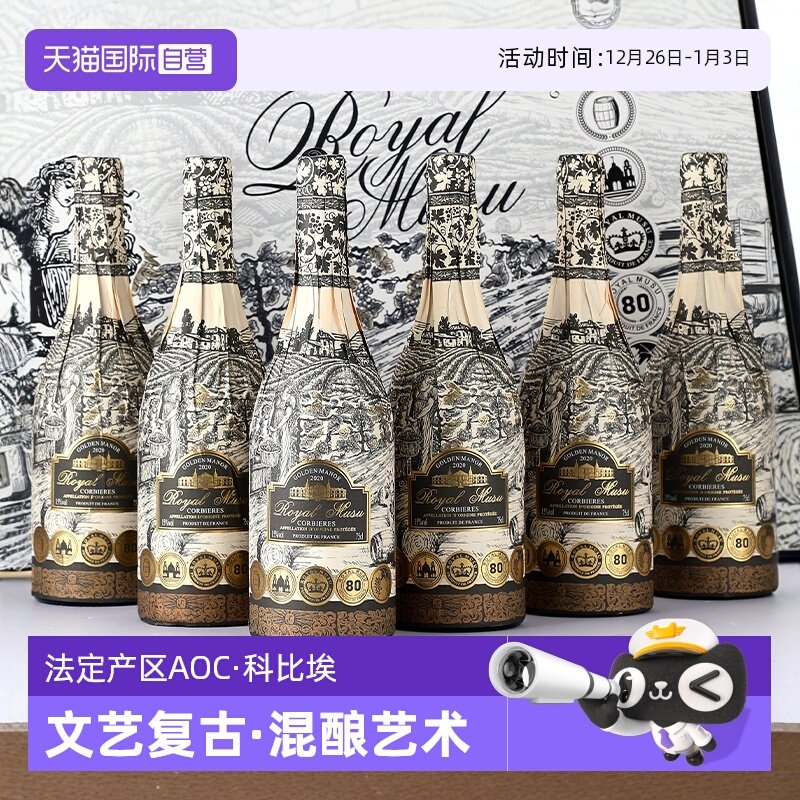 【自营】法国进口红酒整箱 穆苏金色古堡15度AOC干红葡萄酒礼盒装