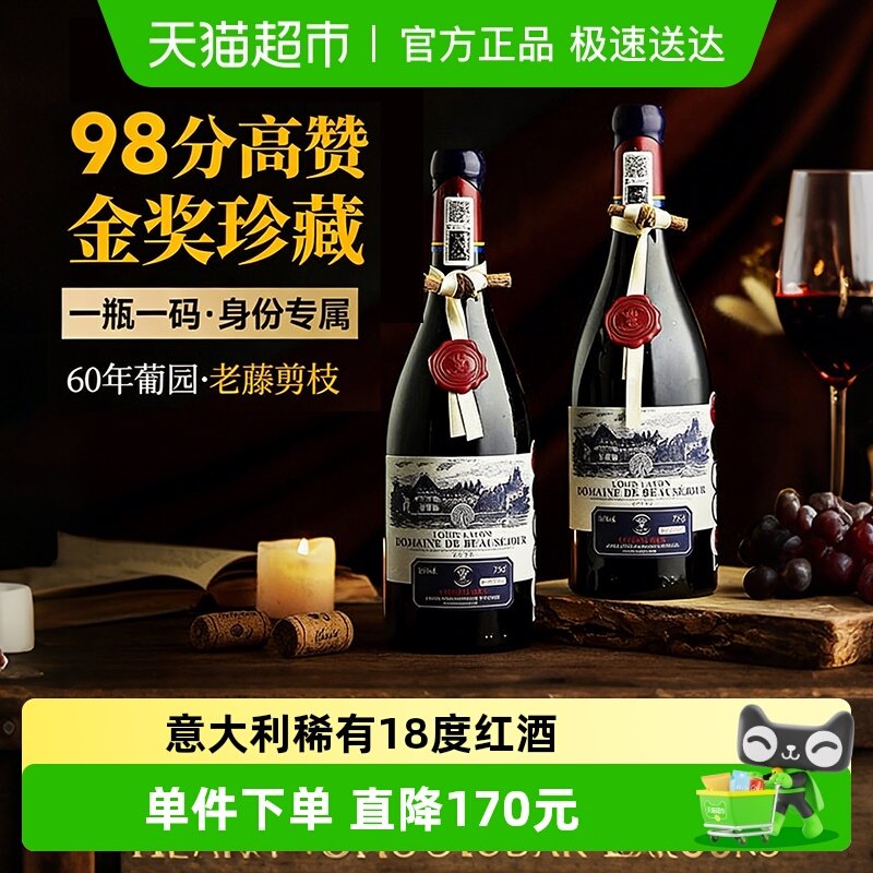 法国原瓶进口红酒路易拉菲LOUISLAFON珍品AOC干红葡萄酒2瓶礼盒装