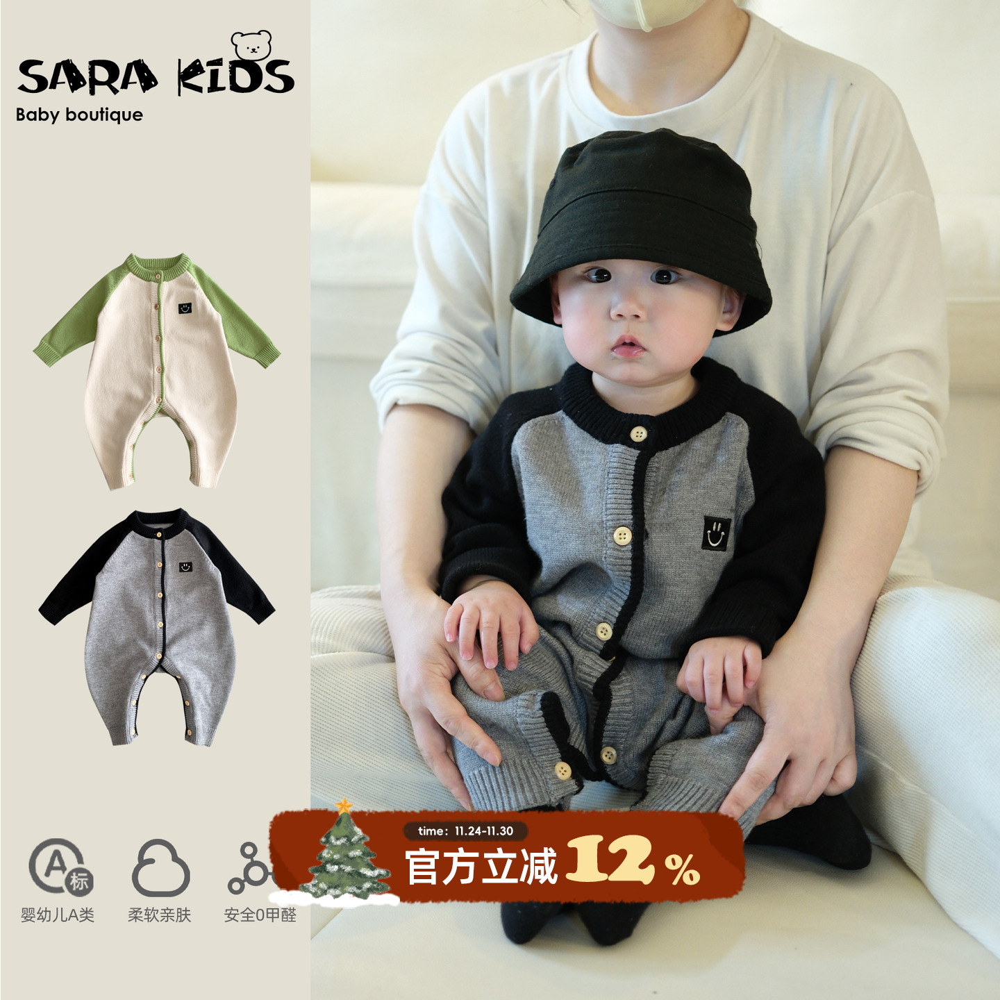 婴儿衣服秋冬毛衣爬服满月宝宝冬装连体衣外套洋气婴幼儿外出爬服