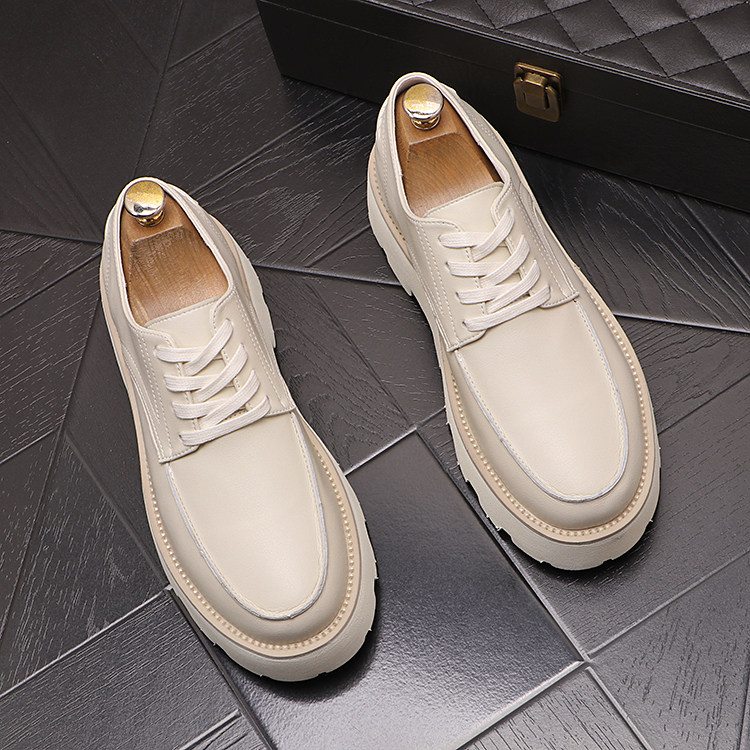 小白鞋男2025新款冬季休闲皮鞋厚底内增高时尚单鞋韩版百搭男鞋潮