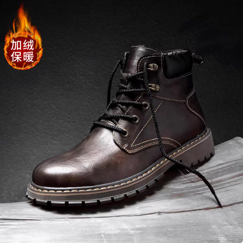 马丁靴男2025新款冬季男鞋韩版潮流男士加绒靴子百搭高帮休闲皮鞋