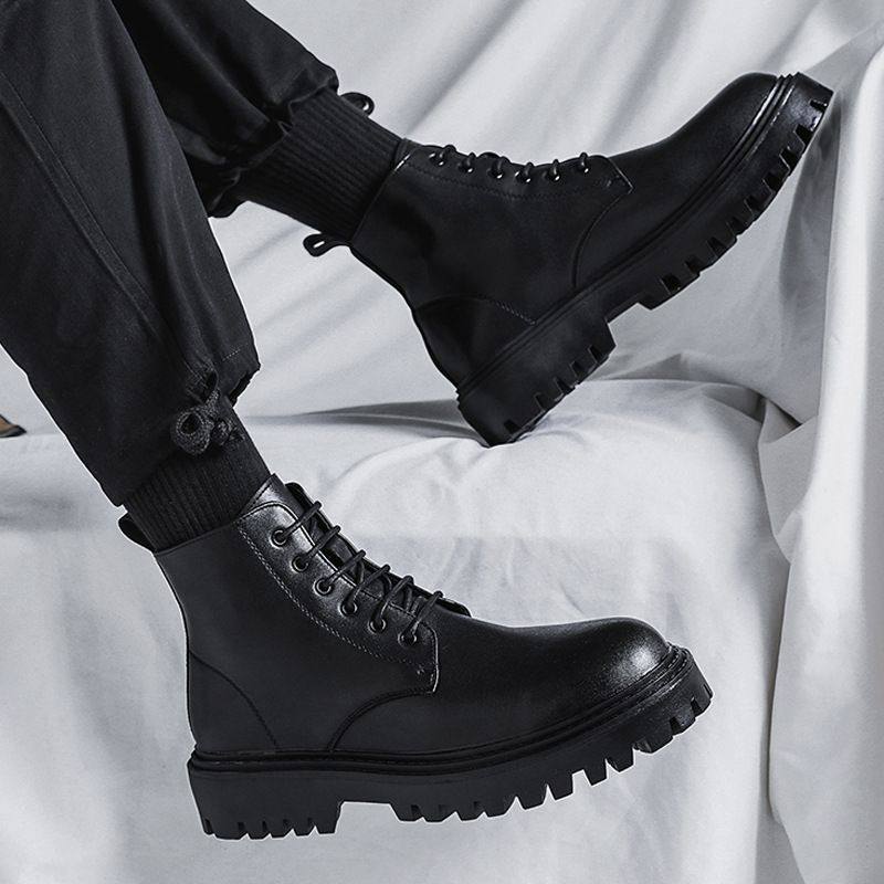 马丁靴男款秋冬季韩版百搭男鞋英伦风长筒增高皮鞋工装中帮机车靴